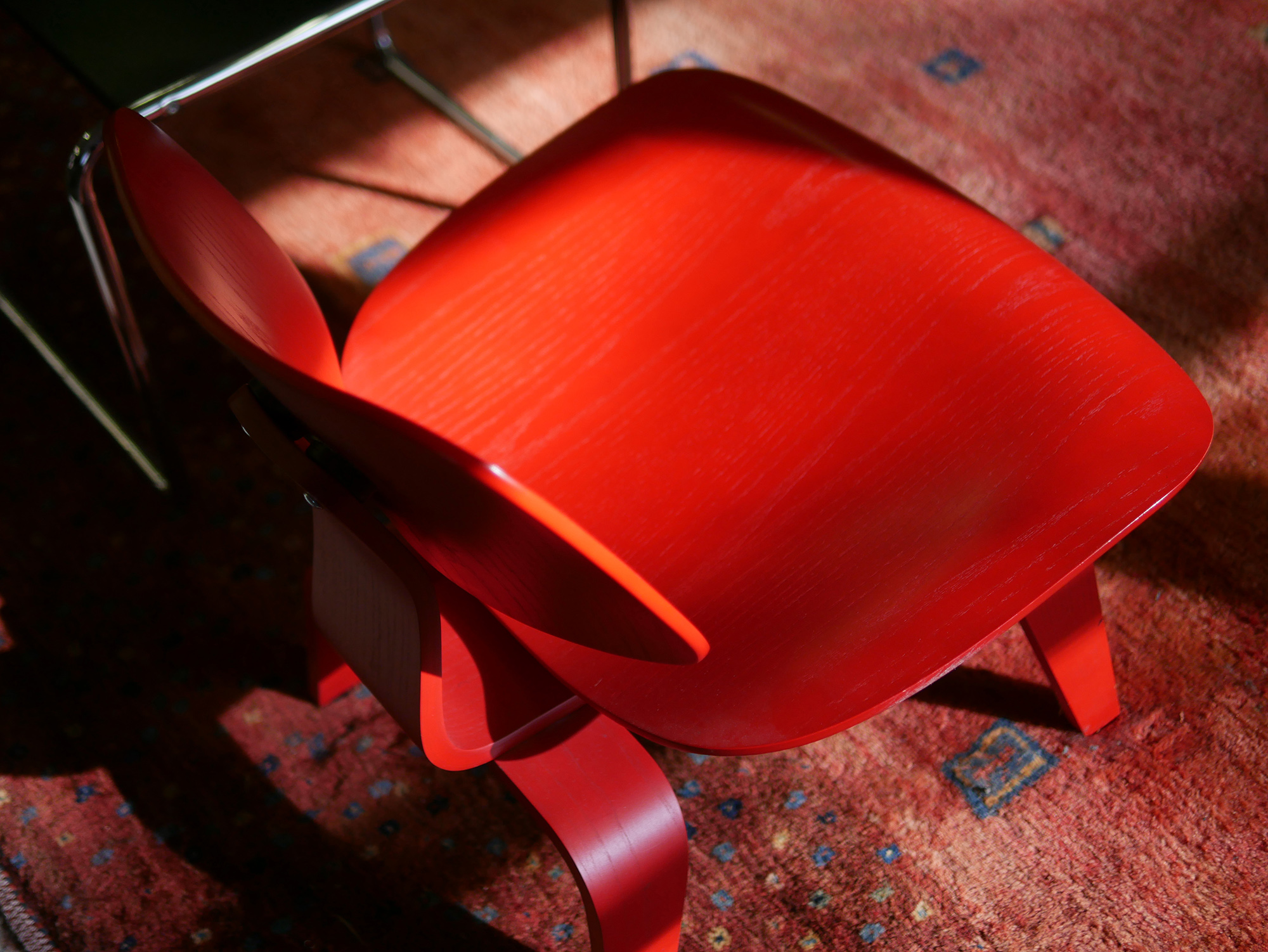 When I sit and listen, I sit in a current production red Eames LCW (Lounge Chair Wood) designed in 1943 by Charles and Ray Eames. If you’re wondering—Is it comfortable?—it is. I’ve been sitting on Eames LCWs since the late 1980s and I wouldn’t have if they weren’t.