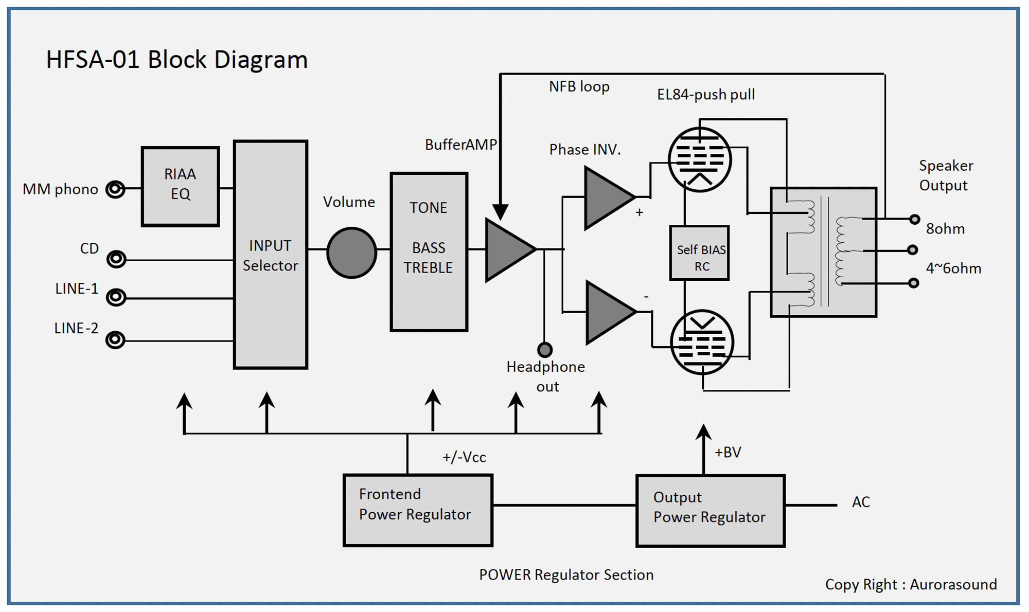 The brand new Aurorasound HFSA-01 Vacuum Tube Integrated Amplifier uses two pair of EL84s in push-pull configuration for 14 Watts of output power.