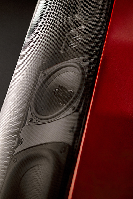 Outwardly, the T66 will be a GoldenEar loudspeaker, save for the addition of an optional red finish. Internally, however, we’ve upgraded the crossover with AQ’s burned-in caps and direction-controlled cabling to significantly reduce noise. The cabinet walls have been thickened, bracing increased, and high-quality damping materials added to minimize resonances. The base is now made of aluminum, solidifying the speakers’ foundation while also enhancing its appearance. And we’ve added a second set of higher-quality binding posts to accommodate biwiring. Like the Two+, the T66 has a powered bass section, but with an upgraded amplifier platform for improved linearity and cleaner, deeper bass.