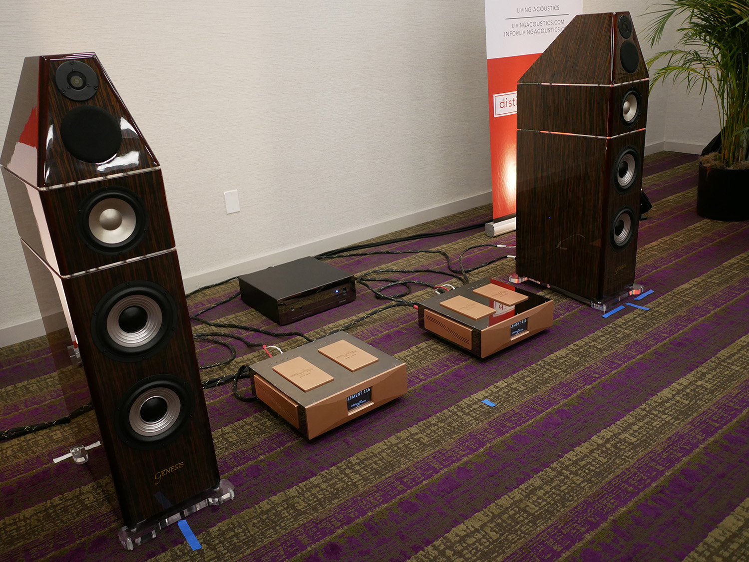 Speaking of sources, the Genesis Advanced Technologies Record Player ($150,000) — which includes the ‘table, 14″ Wand Of Origin Tonearm, Platinum Premium phono stage, cabling and rack — was paired with an Ortofon MC Anna Diamond Cartridge ($10,499).