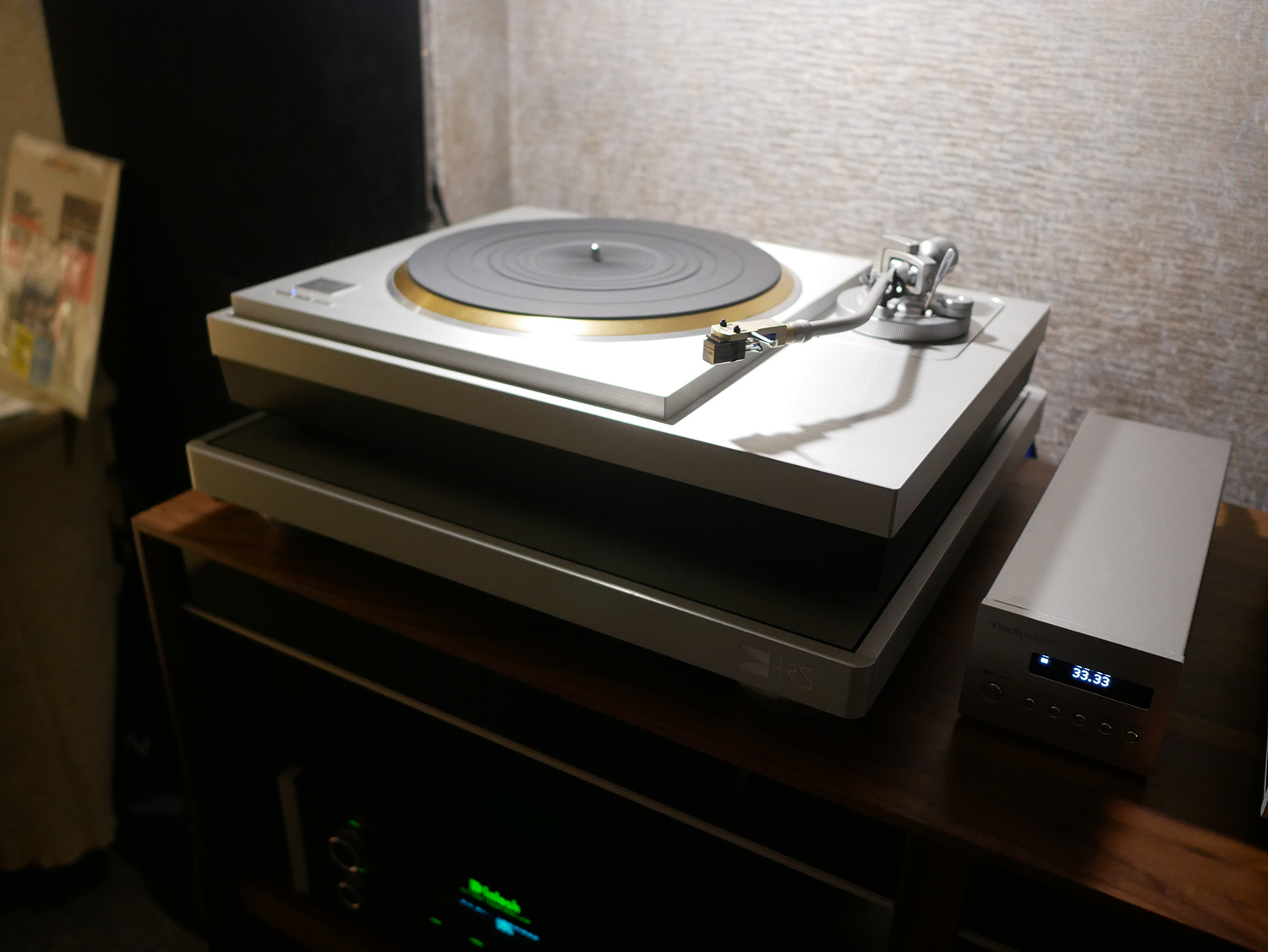 The 2-chassis McIntosh C1100T Tube Preamplifier ($7000) and C1100C Controller ($7000) were all aglow, while a Sutherland Little Loco Phono Preamplifier handled the output from the lovely Technics SL-1000R Turntable, mounted with a Phasemation PP-2000 Cartridge ($6999) wrapped in a My Sonic Labs Headshell ($250).