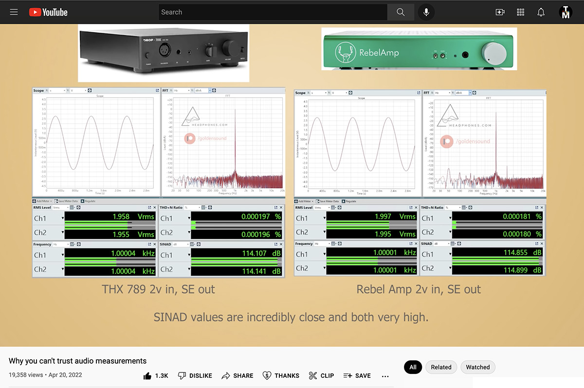 …even devices with the same very high SINAD levels can sound very different. The Rebel Amp and THX 789 both show close to a 115dB SINAD but if you tried the two, you know that they sound entirely different.