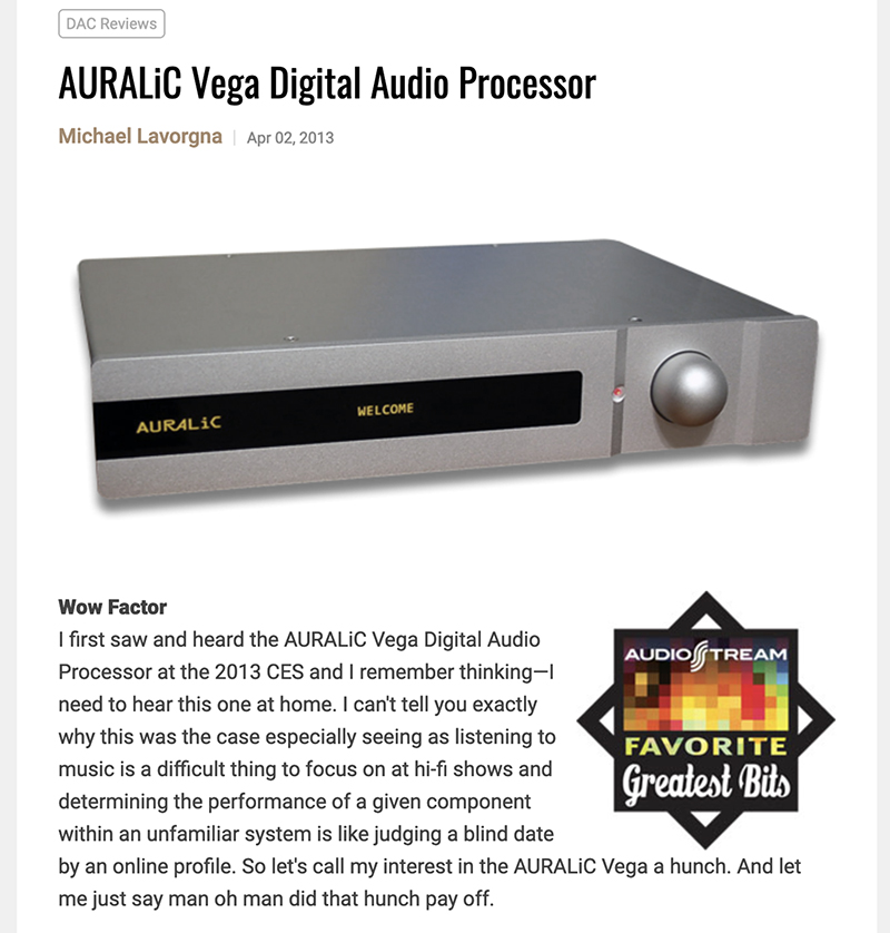 Way back in the early days of ‘computer audio’, I reviewed the AURALiC Vega Digital Audio Processor for AudioStream and was very happy to use it as my reference for a number of years. I look forward to hearing what has developed in the intervening years. Stay tuned.