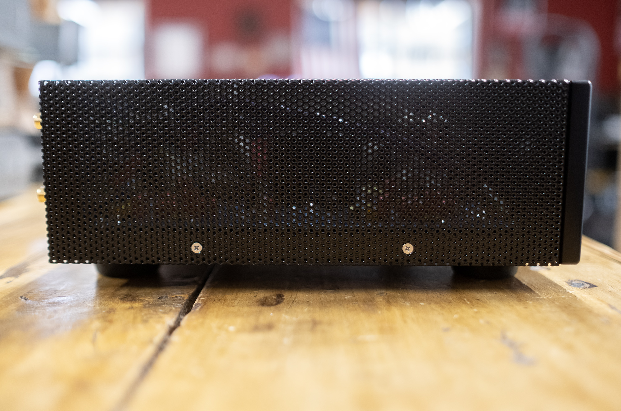 The Chinook’s sides and top are dressed in black metal mesh which is fine by me, while the recessed company logo and model name sit above the on/off button on the otherwise unadorned faceplate.