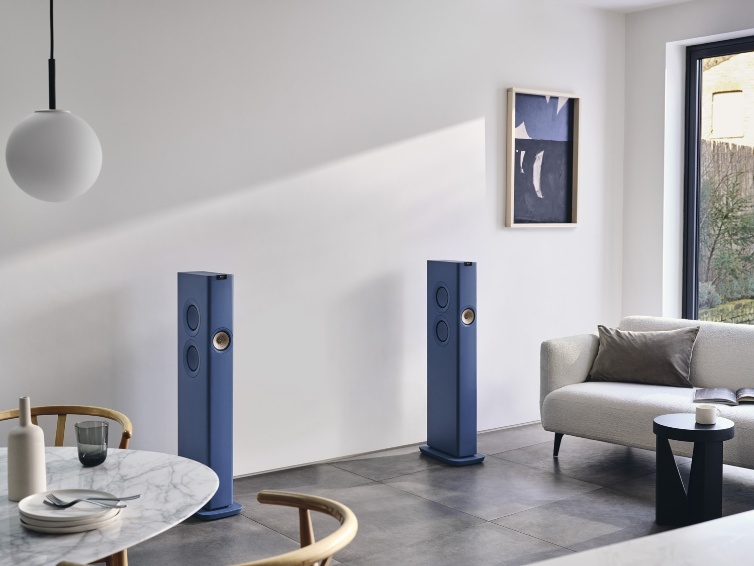 The KEF LS60 Wireless speakers come in Royal Blue, Mineral White, and Titanium Grey and will be available at the end of May 2022 priced at $7,000/system.
