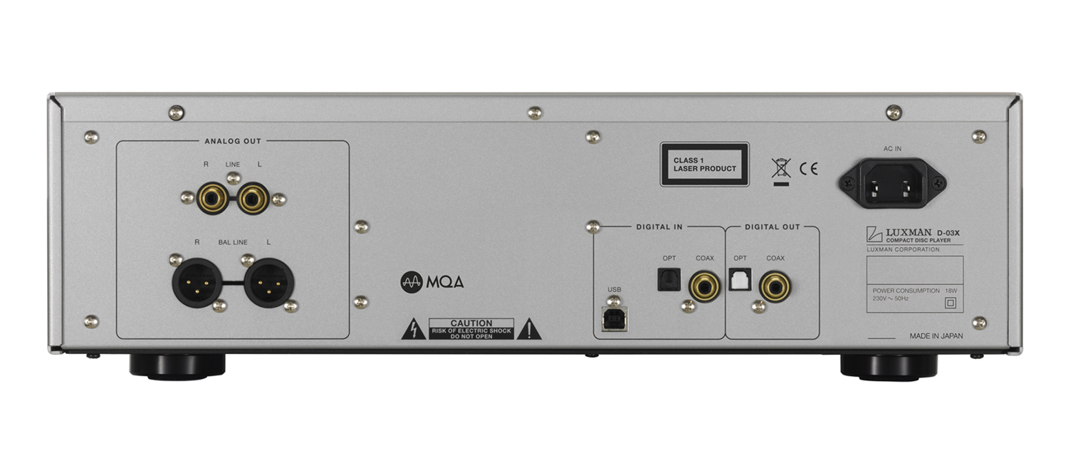 In addition to spinning CDs, you can send music through the D-03R’s internal DAC thanks to three digital inputs (USB, Coax, Optical) and out through the single-ended RCA or balanced XLR outputs, or bypass the DAC via two digital outs (Coax, Optical).