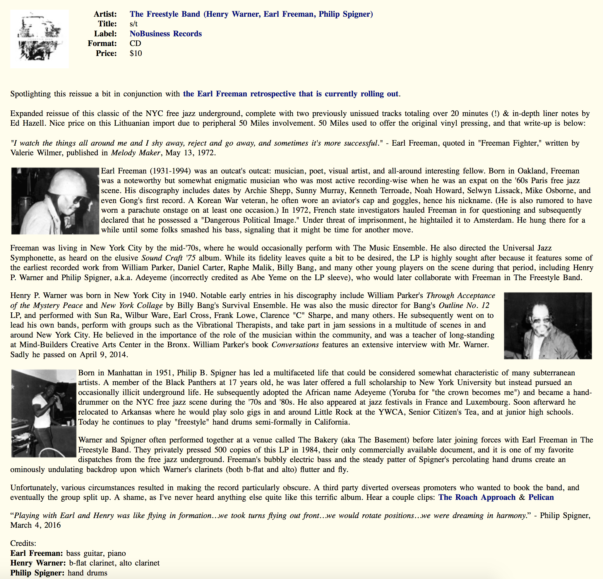 If you have an interest in blues, gospel, and free jazz and you haven’t visited 50 Miles of Elbow Room, you want to because I guarantee you will find things that you can’t find anywhere else (and I mean anywhere else in the real world and internet sense). While 50 Miles has their own label, their stock is chock full of the rare, the unknown by most, and the I need that.