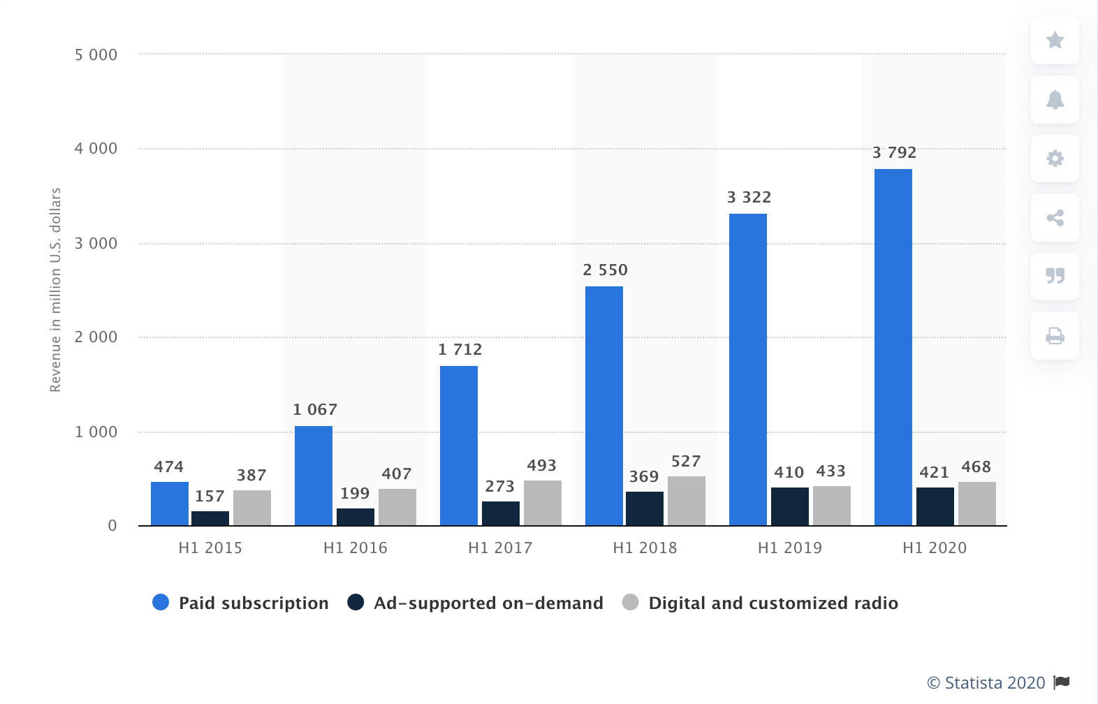 The real value of this kind of poll is seen over time, so I plan to run it again in a year or so. As this handy graph from Statista clearly shows, paid subscription music streaming is on the rise. Hell, even AARP is promoting hi-res streaming! Why? Because it sounds better than lossy streaming and music can change our lives.