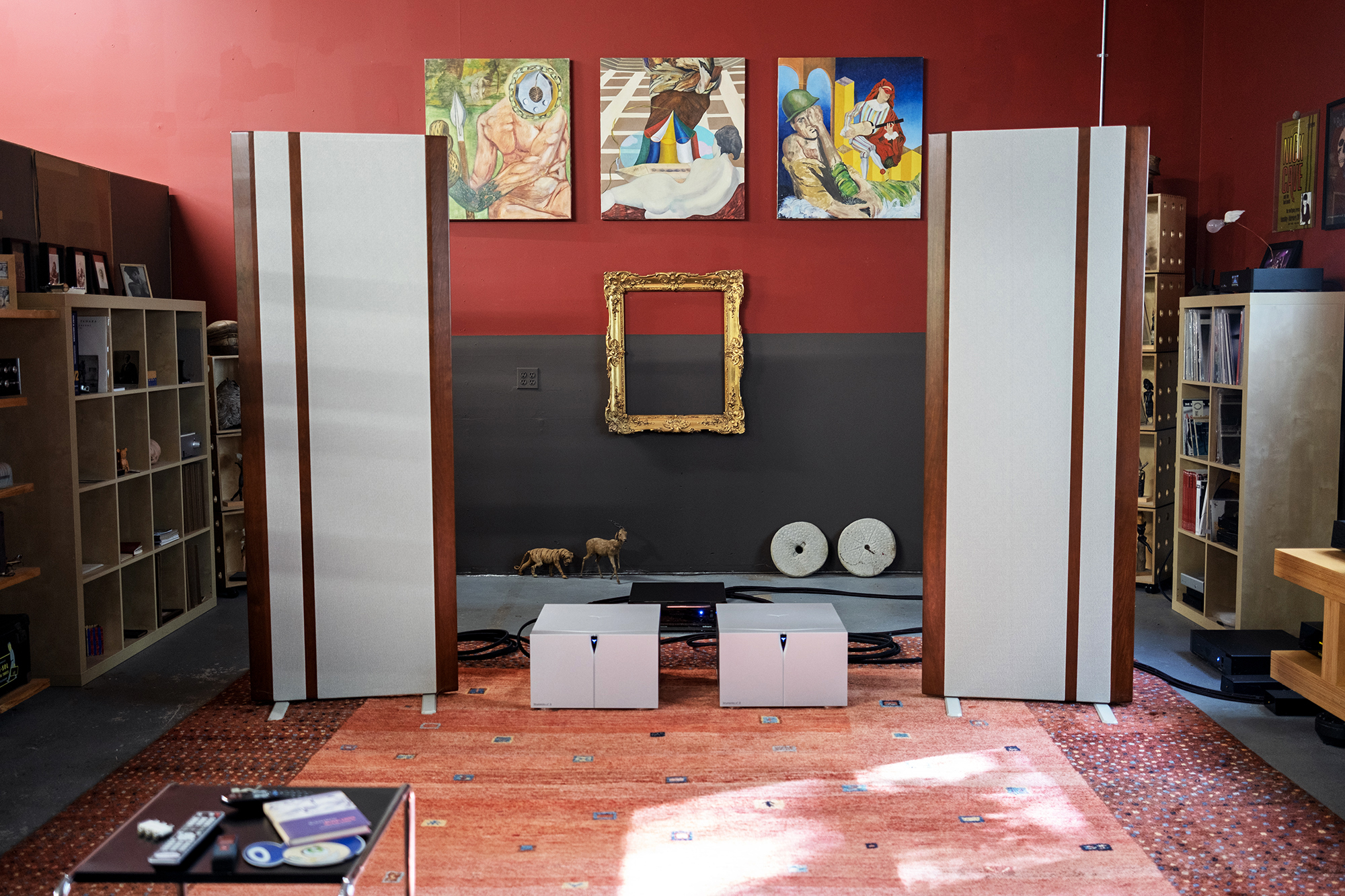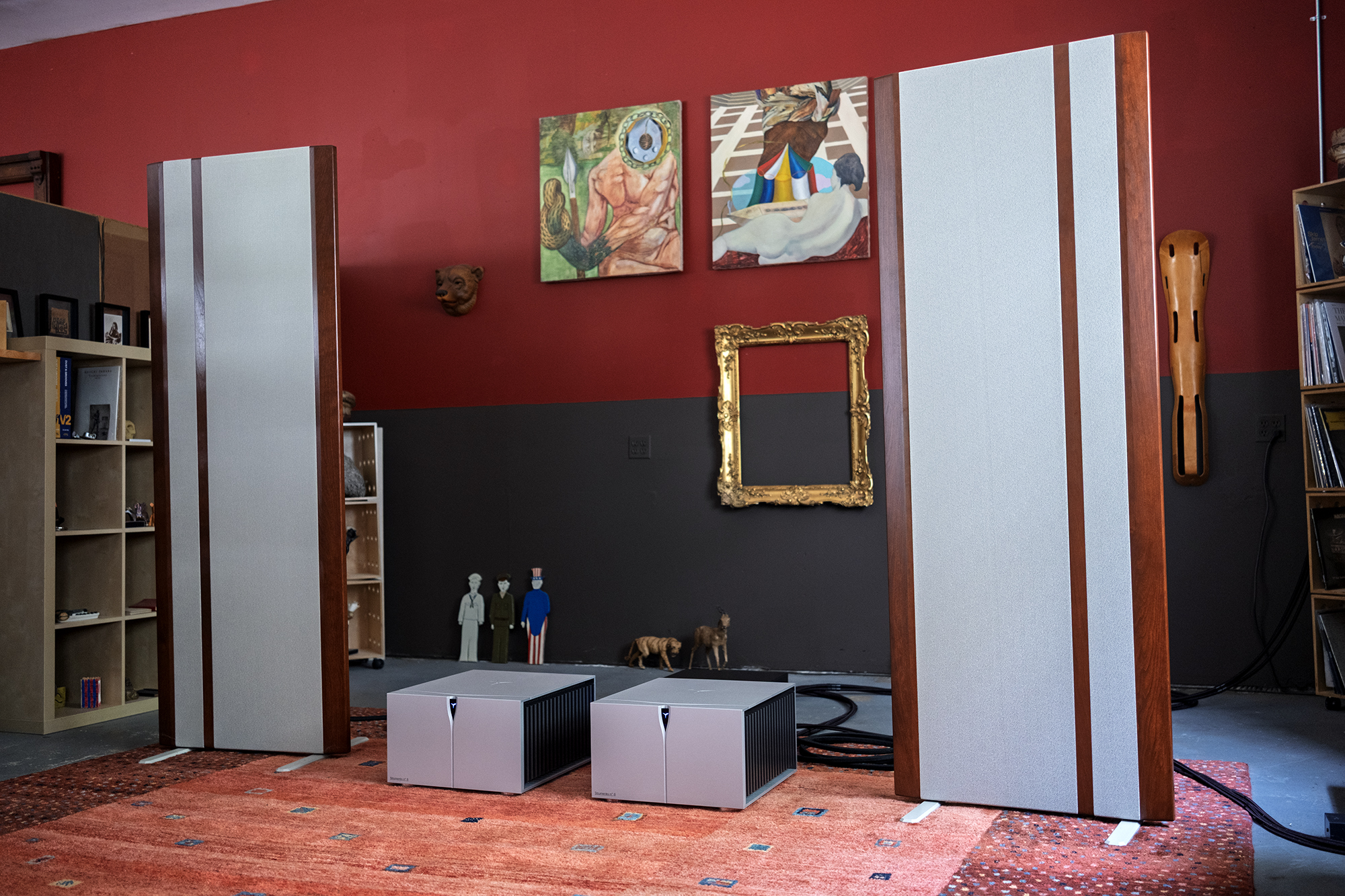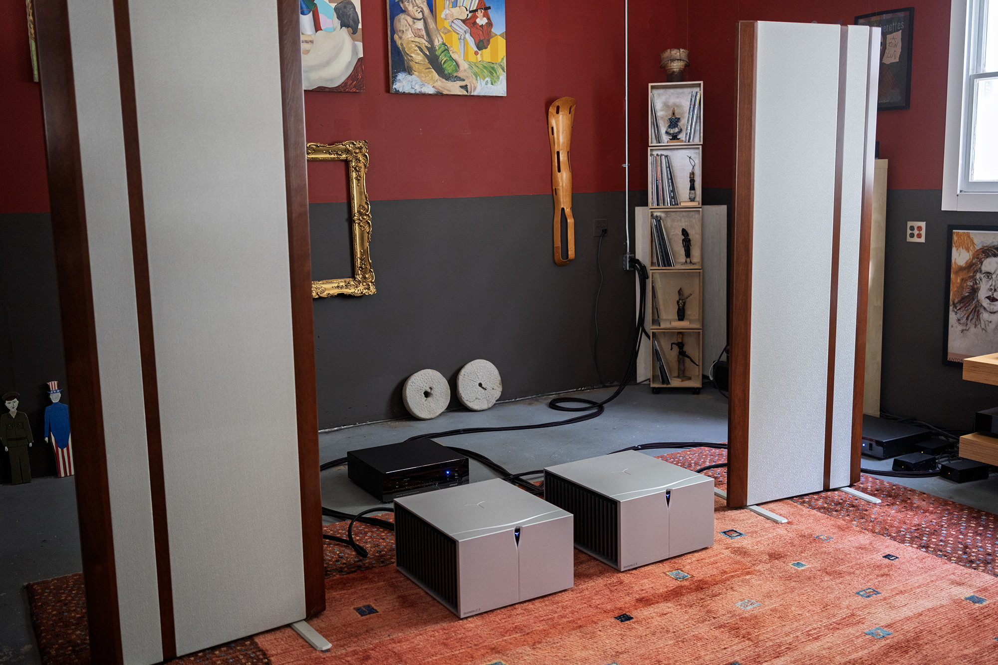 If you want a further peek into my process, I spend a lot of time setting up speakers in Barn over the course of days and weeks depending on the specific speaker in play. With the Maggies, I finally got them dialed in after a few weeks and a late night listening session with the lights down low, nearly off. This in-the-dark speaker setup is typically where I make final adjustments probably because I’m easily distracted by what I see. Once perfectly placed, I then turn the lights on or wait until the next day to measure and make sure both speakers are the exact same distance from walls and books.