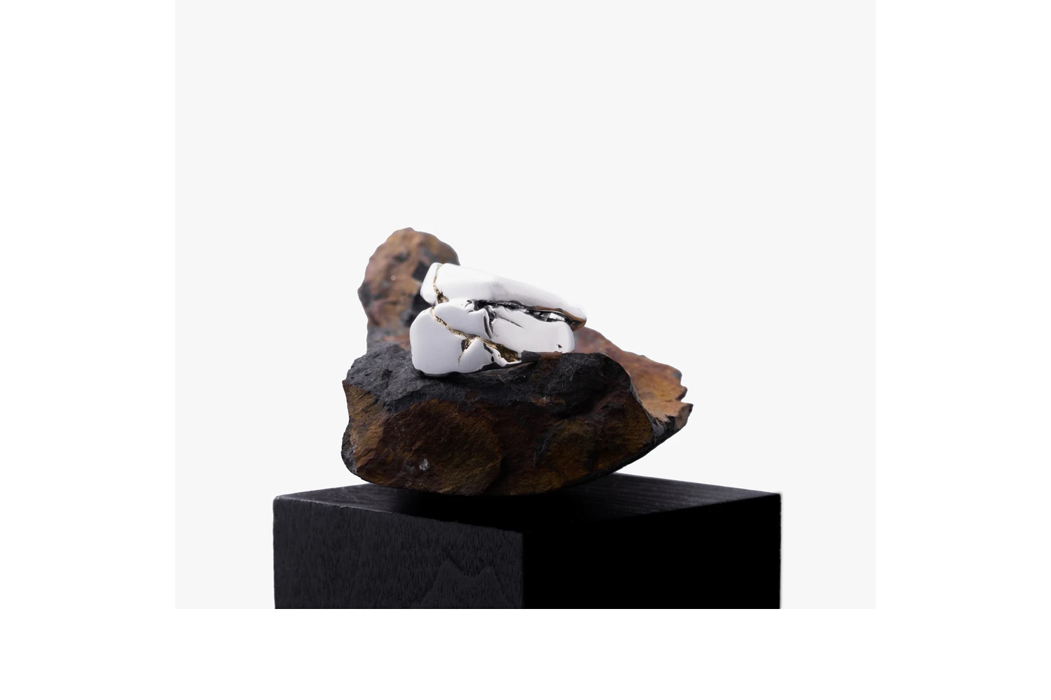“Kintsugi” means golden joinery, a process used to fix broken ceramics using gold. Japan’s Kei Shigenaga pours molten 18k gold into the cracks of his jewelry, creating one-of-a kind pieces that speak to the fragility of life and healing.