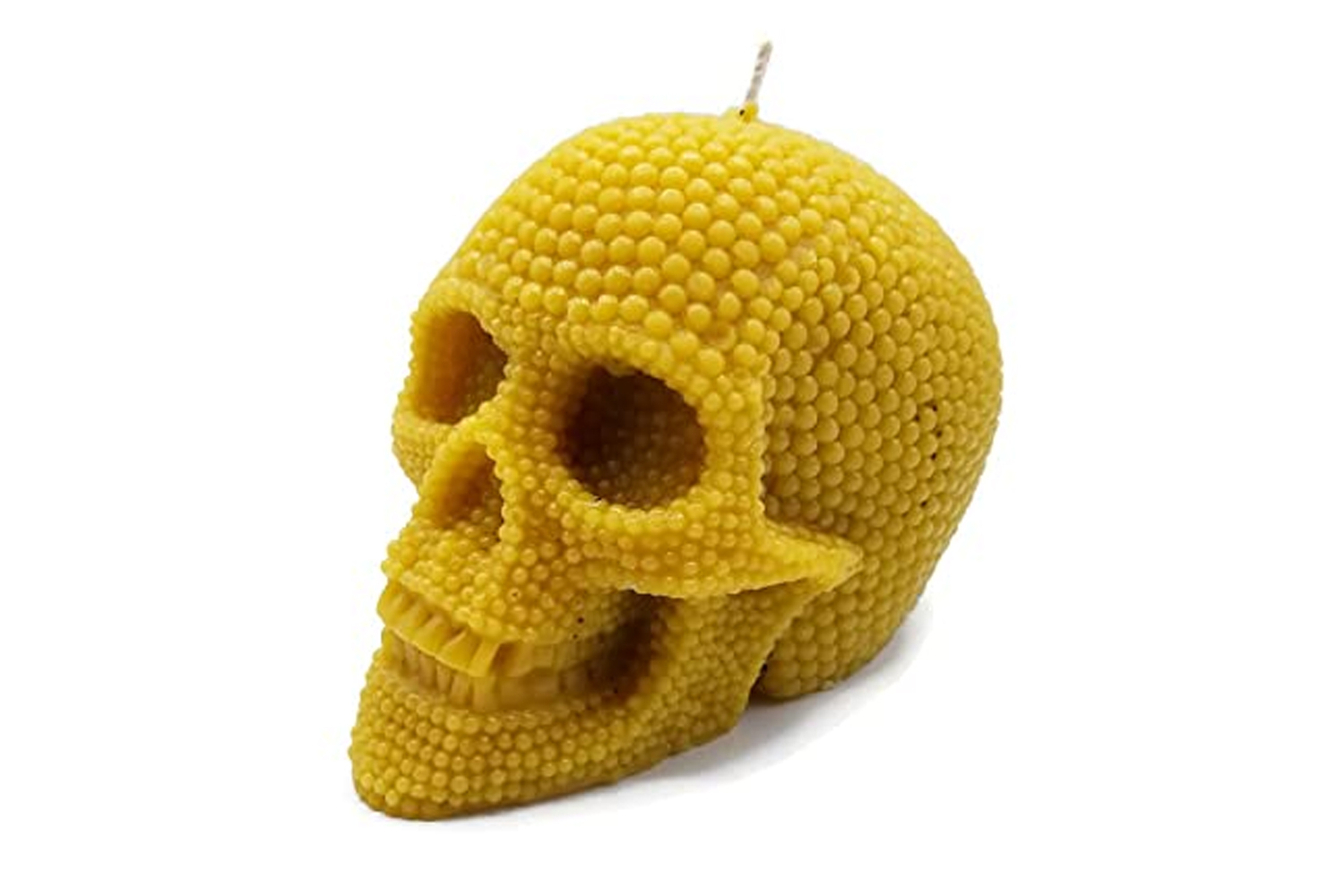 Peace Blossom Candles: Big Skull Candle in Natural Gold Beeswax ($40)