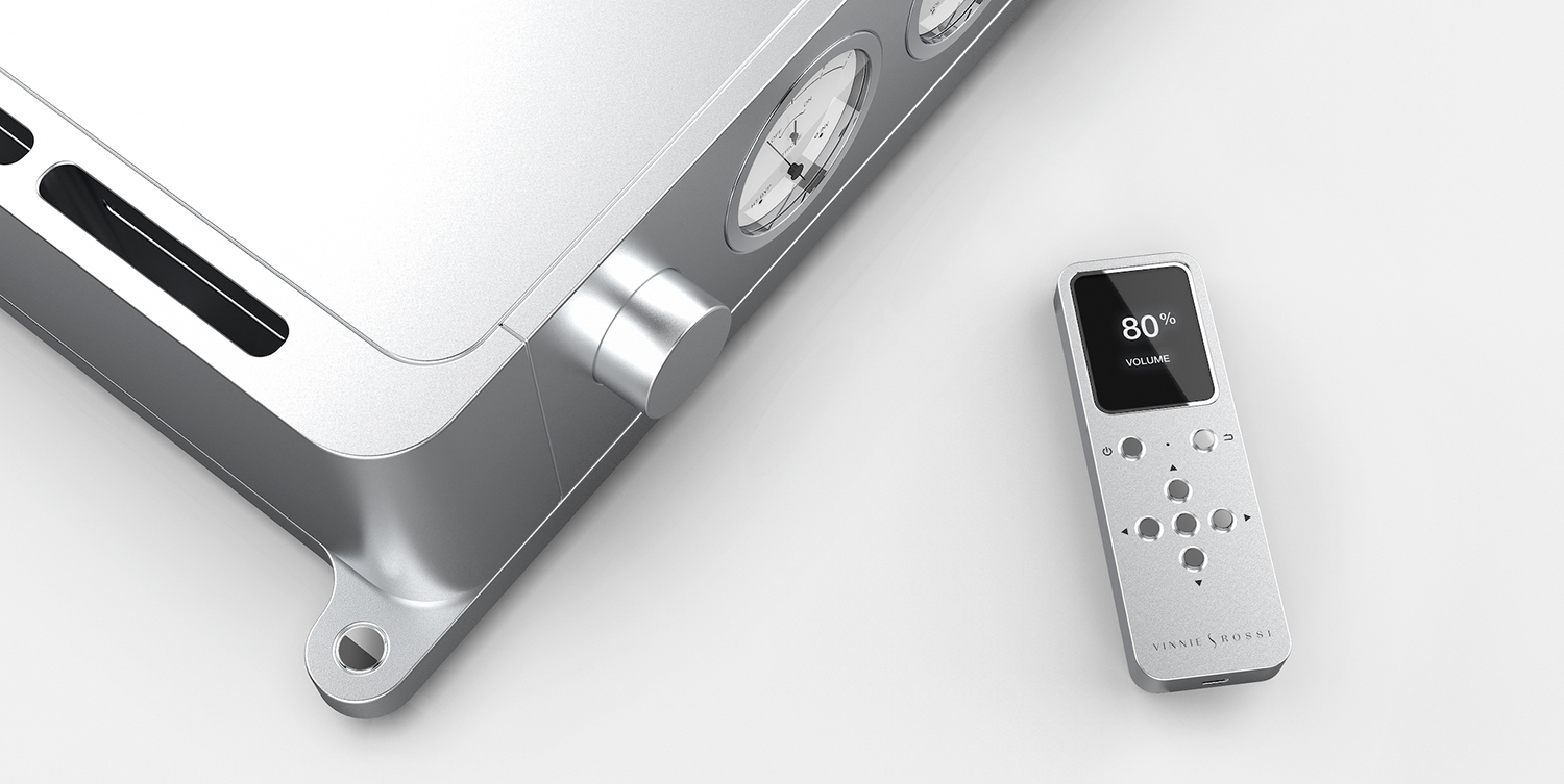 The Vinnie Rossi Brama Collection includes an Integrated Amplifier, Preamplifier, and Stereo Power Amplifier all with industrial design from the mind of Olivier Raymond (Porsche Design, Mercedes-Benz).